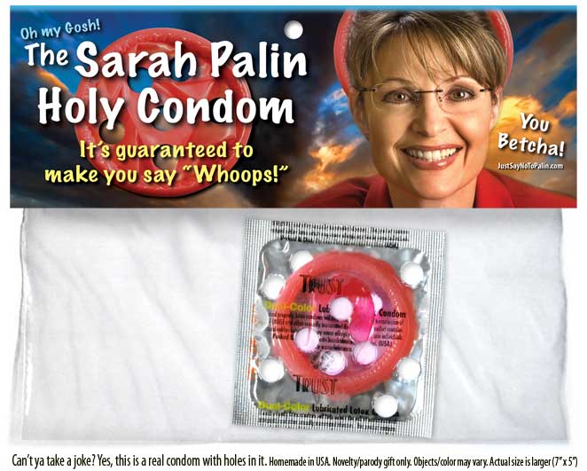 sarah palin condoms, palin condoms, palin holy condoms, anti-palin,